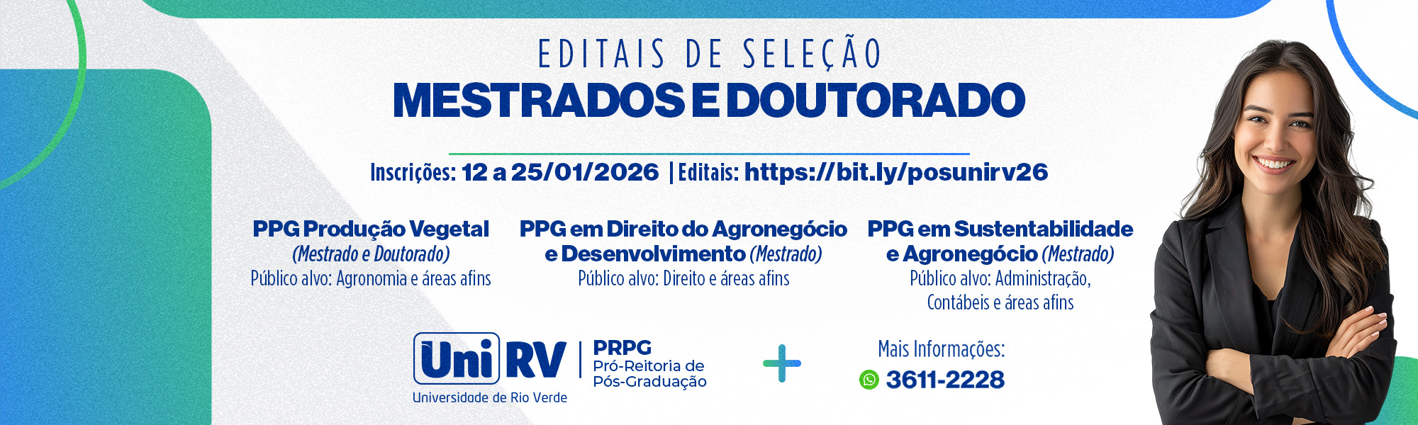 A Universidade de Rio Verde - UniRV é uma conquista histórica do povo rio-verdense. Nos últimos anos, cresceu, consolidou-se como Universidade de grande porte, tornou-se referência e uma das mais bem conceituadas do Brasil. Trabalho sério e de qualidade que é desenvolvido pela administração superior, docentes, servidores técnicos-administrativos e acadêmicos, e que tem se revertido em credibilidade acadêmico-científica junto à sociedade.