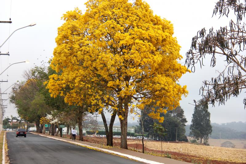 Após os ipês-rosas, que foram os primeiros a florescer em julho, quem passa pela UniRV pode admirar os ipês-amarelos e brancos que dividem a atenção e encantam o acesso da Universidade.