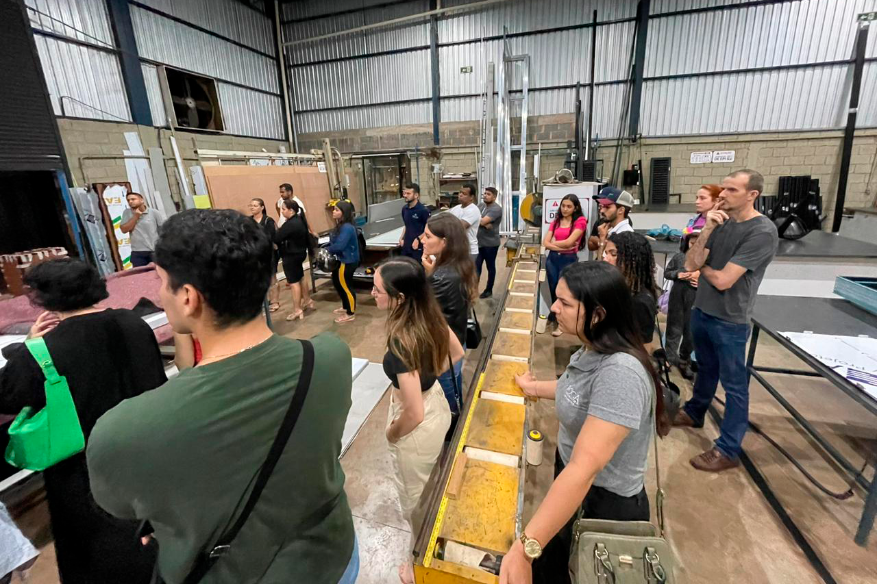 During the visit, students learned more about the project, specification and fabrication of glass and aluminum products from Delta distributer, a Rio Verde company that is present in the entire country. The classes had contact with a wide range of materials and new applications, complementing the content of the subjects: “Materials and Applications”, from the third period, and “Projects of Commercial Environments”, from the fifth period.