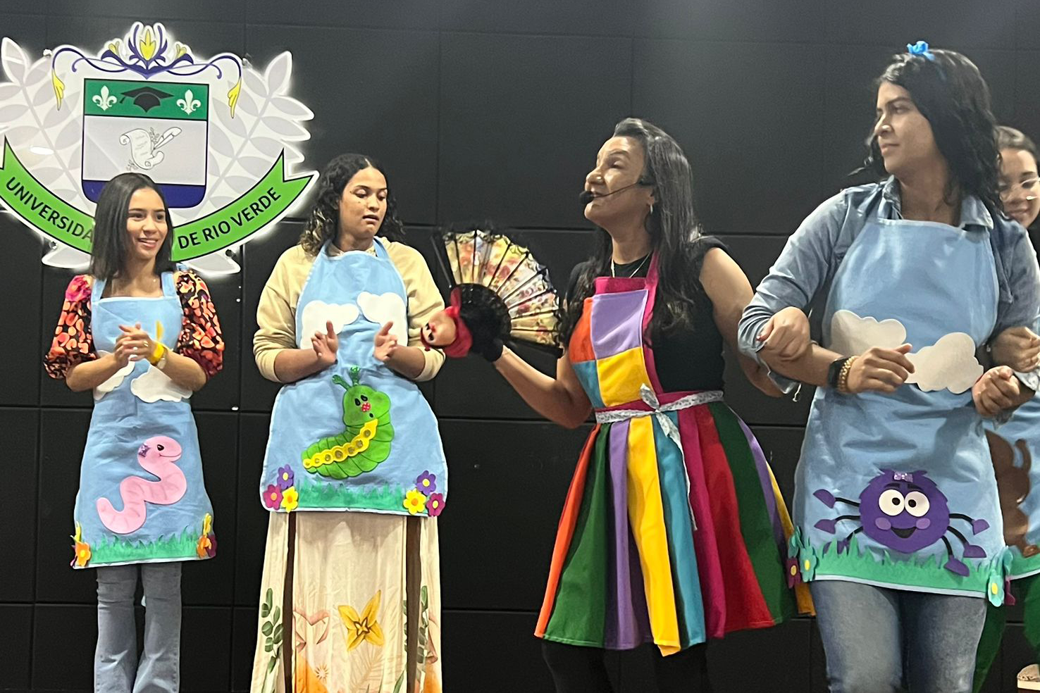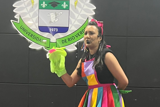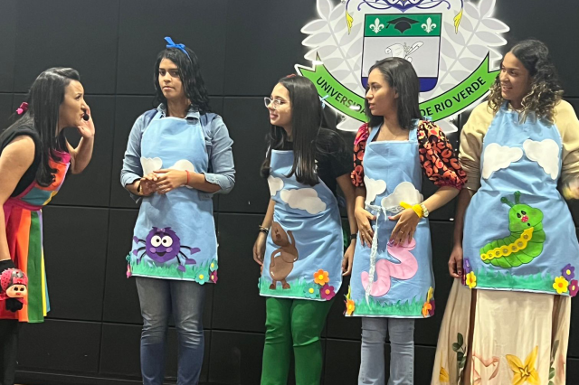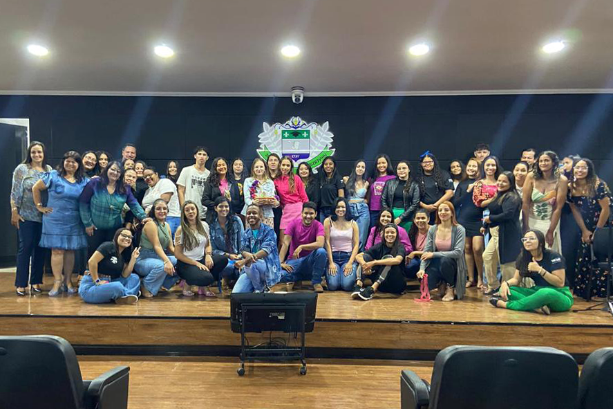 To make the event more beautiful and motivate freshmen even more, the 2011 alumna, teacher Cíntia de Pontes Cerqueira, presented a lecture, animating the evening, answering several questions and bringing a lot of reflections to the academics regarding their initial formation and professional work. Currently, Cíntia is a writer, storyteller and teacher at the Rio Verde Municipal School System, where she works as the principle of the CMEI Lar Crianças para Jesus. Highlighting a child story she wrote, called “My name is Zé, what’s yours?”, written during the covid-19 pandemic and that became internationally renowned.