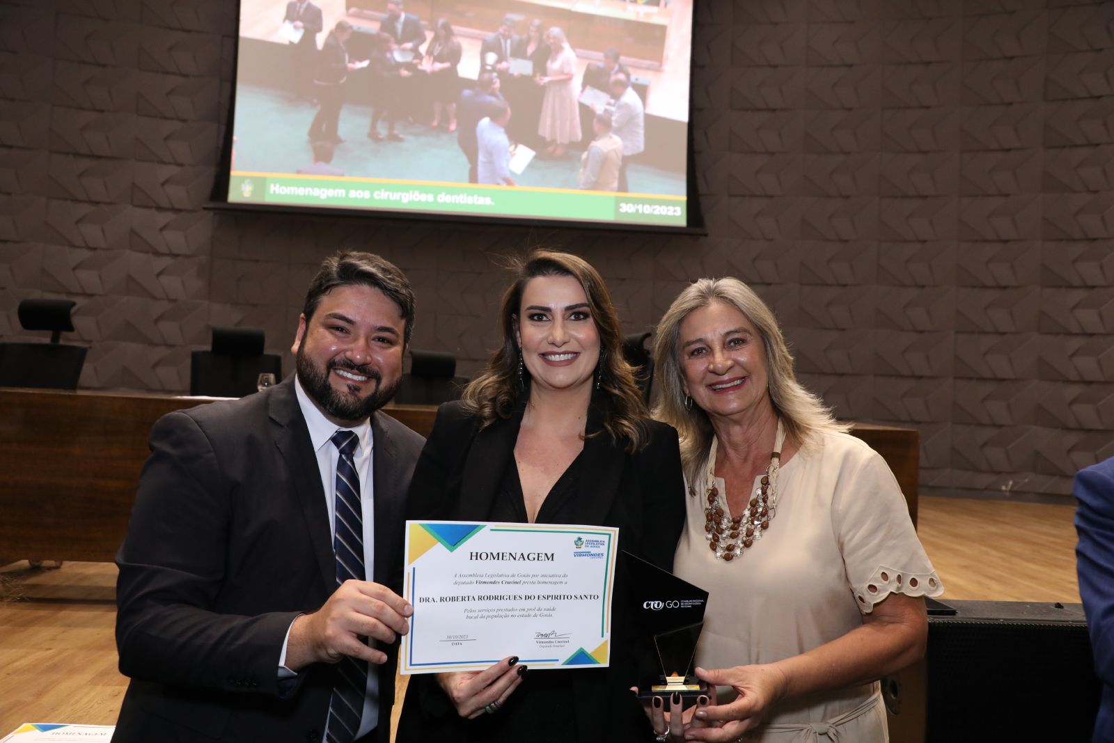 Em comemoração ao Dia do Dentista e o Dia Nacional da Saúde Bucal, celebrado em 25 de outubro, e em reconhecimento ao trabalho prestado no estado de Goiás, em sua área de atuação, a professora da Faculdade de Odontologia, Ma. Roberta Rodrigues do Espirito Santo, foi agraciada com o Certificado do Mérito Legislativo, entregue durante uma cerimônia especial realizada pela Assembleia Legislativa de Goiás, na noite desta segunda-feira, dia 30 de outubro.