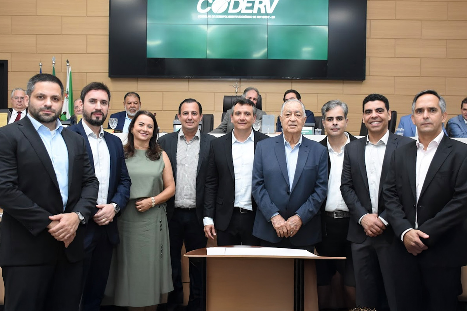 Criado há dez anos com o objetivo de fomentar políticas públicas e privadas que estimulem o crescimento econômico, a geração de empregos e a qualidade de vida da população, o Conselho de Desenvolvimento Econômico de Rio Verde (Coderv) realizou na noite desta quinta-feira, dia 30 de janeiro, a Solenidade de Posse da nova diretoria executiva, eleita para o biênio 2025/2026. A cerimônia realizada na Câmara Municipal contou com a presença do Reitor, professor Dr. Alberto Barella Netto na mesa diretiva, representando a Universidade de Rio Verde, que tem cadeira na Câmara de Assuntos Universitários.