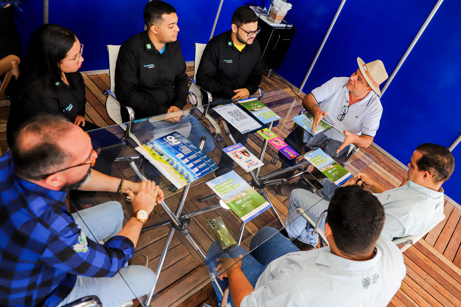 O estande foi palco, nesta manhã, de uma produtiva reunião da Pró-reitoria de Pesquisa e Inovação com os representantes do Serviço Nacional de Aprendizagem Rural – Senar Go. Estiveram presentes, o Diretor de Tecnologia e Inovação, Pedro Camilo e o Coordenador Regional, Renildo Teixeira. Durante o encontro com o Pró-reitor de Pesquisa e Inovação, Prof. Dr. Carlos César Evangelista e Kermme Rebouças, Coordenador do Centro de Inovação, Pesquisa e Pós-Graduação.
