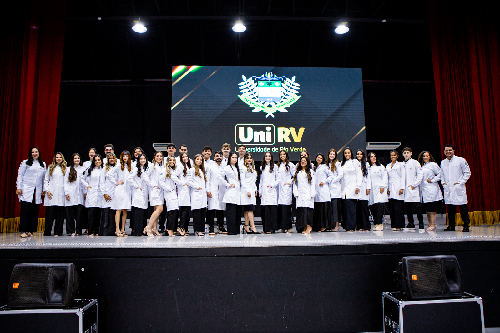 O Reitor da UniRV, Professor Barella, deixou uma mensagem especial aos calouros, ressaltando a importância do momento e agradecendo a confiança de todos na Universidade para esta nova jornada. “Cada cerimônia como esta renova a missão da UniRV em formar profissionais que carregam o saber, a técnica e, acima de tudo, o compromisso com a vida. O jaleco branco representa mais do que uma etapa acadêmica, representa também a fé que a sociedade deposita em vocês. Que este seja o início de uma trajetória pautada pela ética, pela dedicação e pelo amor à profissão que escolheram”, assinala.