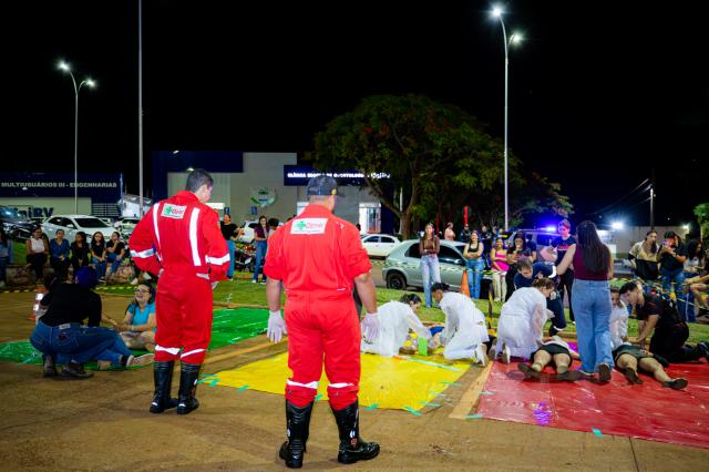 Sob a orientação da professora especialista Bruna Louzada Saez e apoio do DEME, os acadêmicos aprenderam como realizar a prestação de socorro utilizando o método start, que é um processo de triagem para rápida classificação em Incidentes com Múltiplas Vítimas (IMV).