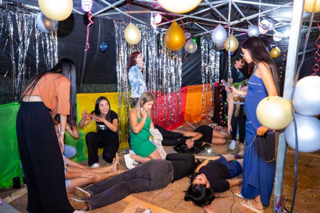 O teatro representava uma festa, na qual um casal discutia e o homem alcoolizado agredia a parceira e depois fugia, causando um acidente de trânsito.