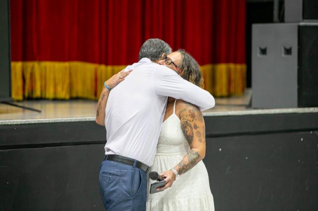 Ao retornar ao palco para os agradecimentos, Paula Reys e Laura Freitas reforçaram o papel de famílias, voluntários, apoiadores e da própria UniRV no apoio e visibilidade do projeto.