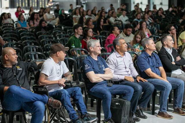 Em seguida, a Professora Paula Reys, líder do projeto e coração da iniciativa, compartilhou o início dessa história e a transformação que acompanhou ao longo dos anos. “Quando começamos, motivados pela força da Marina, nosso maior objetivo era abrir portas para que pessoas com deficiência tivessem acesso a um esporte que fosse, ao mesmo tempo, terapia, liberdade e pertencimento. O que vemos hoje é a concretização de um sonho coletivo”, compartilha.