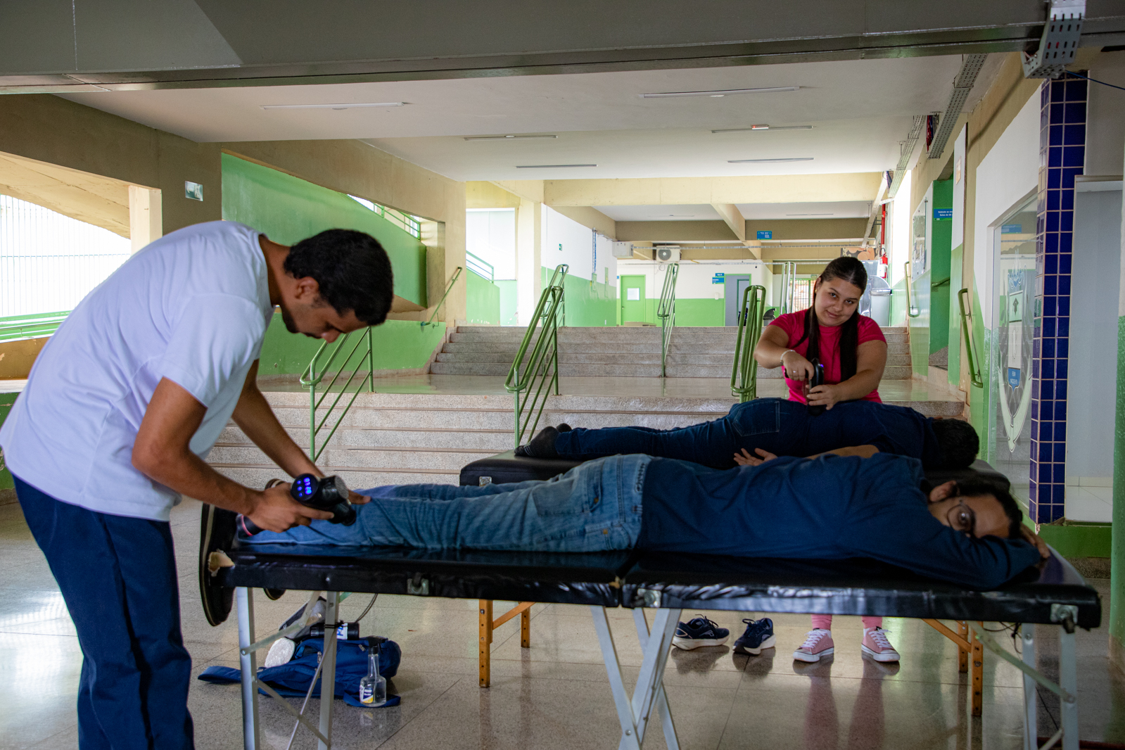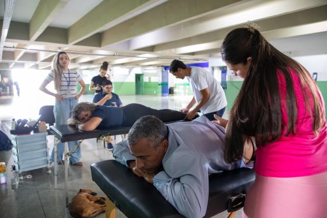 Já imaginou estar no ambiente de trabalho e receber cuidados em fisioterapia que impactam diretamente na qualidade do exercício da profissão? Este é o papel dos acadêmicos do 7º, 8º e 9º períodos da Faculdade de Fisioterapia durante o estágio em fisioterapia do trabalho. a ação coordenada pela professora Camila Caroline Santos leva realiza intervenções nas terças e quintas-feiras, com liberação miofascial, avaliação postural e várias outras técnicas voltadas a saúde do trabalhador.