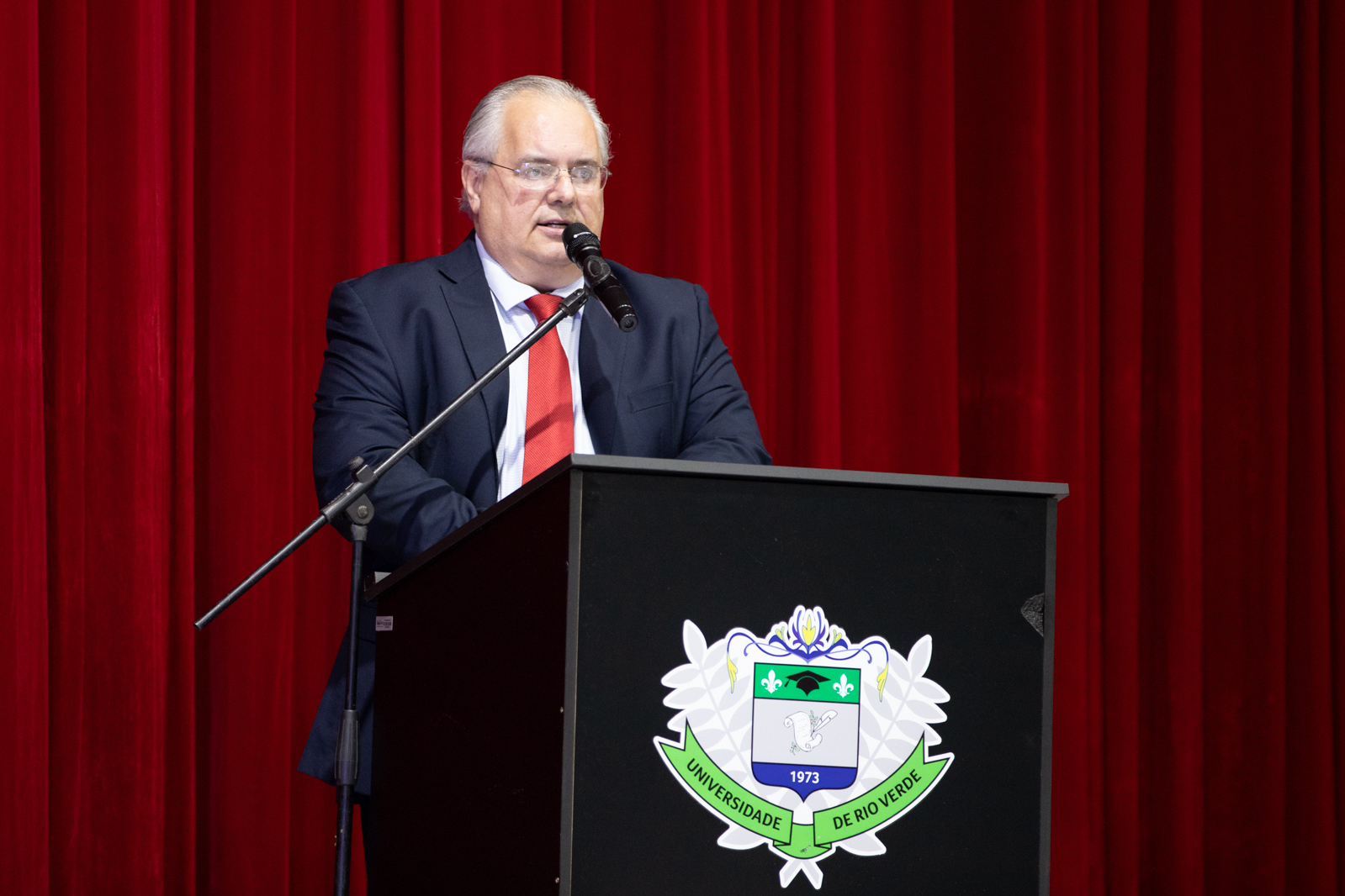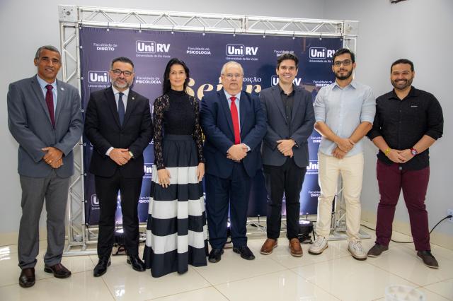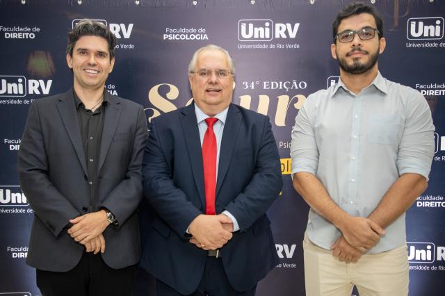 A solenidade de abertura contou com a presença do Reitor, Professor Dr. Alberto Barella Netto; do Pró-Reitor de Assuntos Estudantis, Professor Dr. Arício Vieira da Silva; da Procuradora-Geral da UniRV, Professora Dra. Muriel Amaral Jacob; do Professor Dr. Jammes Miller Bessa, representando o presidente da OAB Subseção de Rio Verde, Dr. Alessandro Gil Moraes Ribeiro; da diretora da Faculdade de Direito, Professora Dra. Línia Dayana Lopes Machado; da diretora da Faculdade de Psicologia, Professora Dra. Sueli Pereira Caixeta; do coordenador do evento, Professor Dr. Eduardo Álvares de Oliveira; além da acadêmica Isabela Amaral, representante do corpo discente.